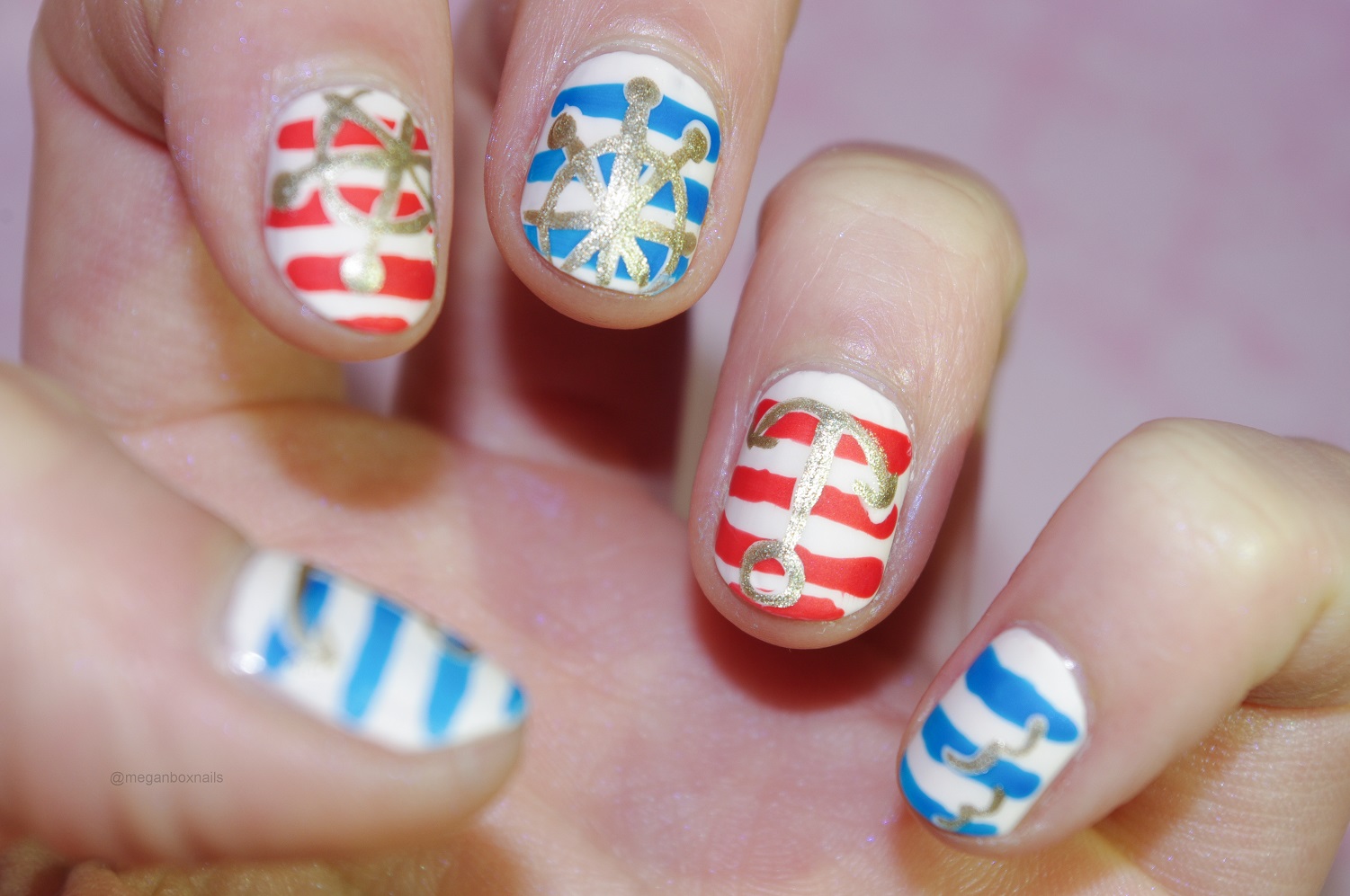 I hope you all are having a beautiful Saturday, we have a really lovely weather here in North- East but unfortunately my dog injured her paws yesterday and we can’t go out for a run. As a result I have loads of time to do my nails and admire other’s. Here are the sailor nails I created earlier today: